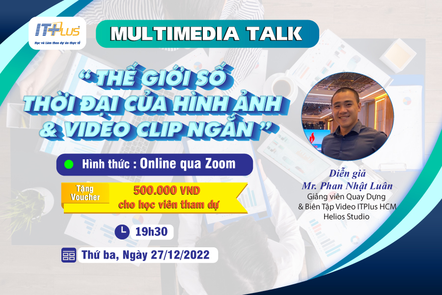 Nhằm cung cấp những thông tin chi tiết, toàn cảnh về lĩnh vực Quay, Dựng và Biên Tập Video cũng như con đường để trở thành một editor chuyên nghiệp, Viện Công nghệ thông tin ITPlus trân trọng kết hợp cùng diễn giả: Mr. Phan Nhật Luân - Owner of Helios Studio, Giảng viên Quay Dựng ITPlus tổ chức buổi nói chuyện chuyên ngành "Multimedia Talk: Thế giới số - Thời đại của Hình ảnh và Video clip ngắn". Buổi chia sẻ sẽ được tổ chức Online phù hợp với các bạn đang tìm hiểu về ngành Editor, các bạn Editor muốn mở rộng kiến thức để phát triển sản phẩm…