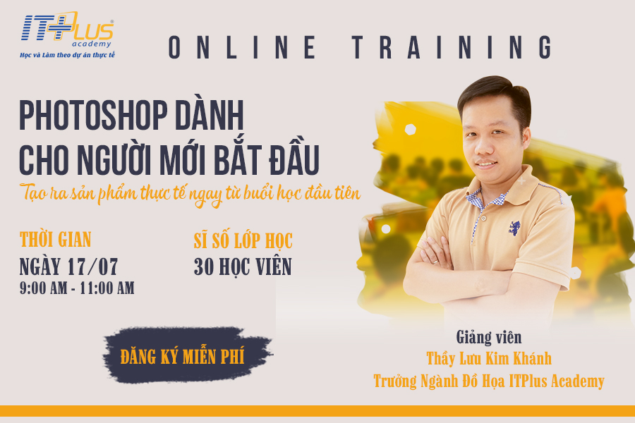 Chuỗi chương trình “Dạy Đồ Họa & Lập Trình Online Miễn Phí" ngày 17/07/2021 đón chào một Giảng viên - Diễn giả vô cùng nổi tiếng của ITPlus Academy: Thầy Lưu Kim Khánh - Trưởng Ngành Đồ Họa ITPlus. Thứ Bảy này, vào thời gian 09h00 - 11h00, thầy Lưu Kim Khánh sẽ mang tới cho chúng ta một chủ đề vô cùng hấp dẫn "Photoshop Dành Cho Người Mới Bắt Đầu" với mục tiêu: "Học viên sẽ có thể Tạo ra sản phẩm thực tế ngay từ buổi học đầu tiên". Chương trình sẽ dành cho 30 bạn đăng ký sớm nhất theo form đăng ký dưới bài viết, vì vậy các bạn hãy nhanh tay để có thể tham gia được Buổi học vô cùng bổ ích này nhé!