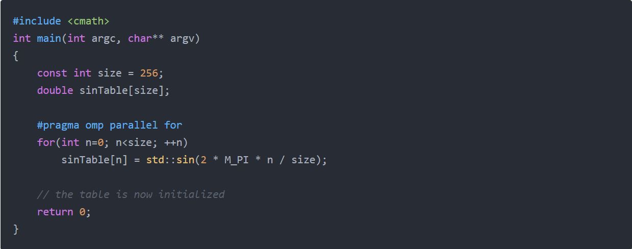 Đây là ví dụ đơn giản về OpenMP nhằm tăng tốc độ thực hiện vòng lặp for.