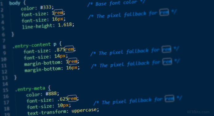 rem: là đơn vị tham chiếu tỷ lệ so với phần tử gốc của website ở đây là thẻ html dựa vào giá trị của thuộc tính font-size