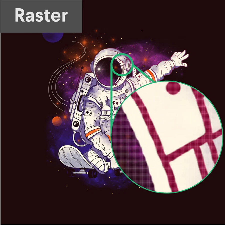 Raster là định dạng mặc định của hình ảnh, video. Raster rất phù hợp để sử dụng trong illustration hay chỉnh sửa hình ảnh bởi sự chi tiết. Tuy nhiên không nên sử dụng raster cho những thiết kế cần độ phân giải cao như logo hay sản phẩm in ấn.