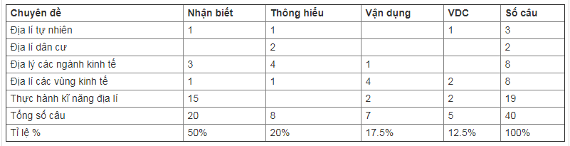 Ma trận đề thi minh hoạ môn địa 2021