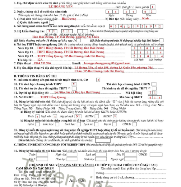 Còn đối với những thí sinh tự do thì sẽ mua phiếu này tại các phòng giáo dục nơi mà mình đang có hộ khẩu thường trú tại đó.