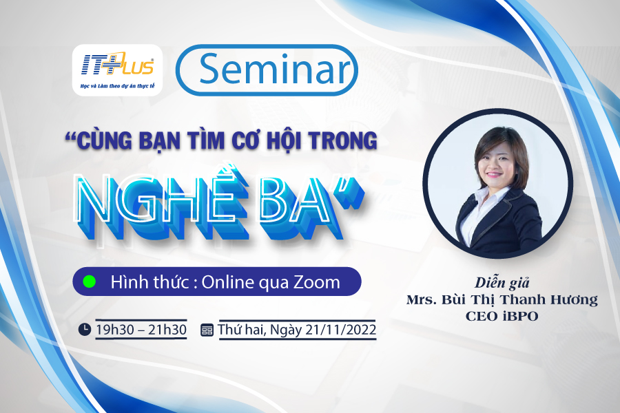 Nhằm tìm hiểu rõ hơn về Nghề BA (Business Analyst), mang đến một cái nhìn tổng quan về nghề, con đường để trở thành một BA chuyên nghiệp.... Viện Công nghệ thông tin ITPlus phối hợp cùng Công ty cổ phẩn iBPO tổ chức buổi hội thảo với chủ đề: "Cùng bạn đi tìm cơ hội trong Nghề BA" với sự góp mặt của diễn giả: