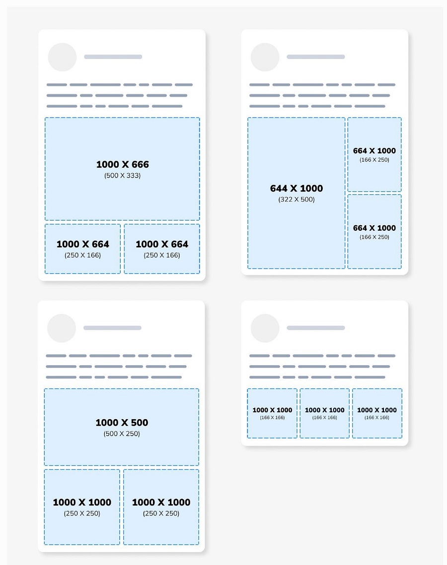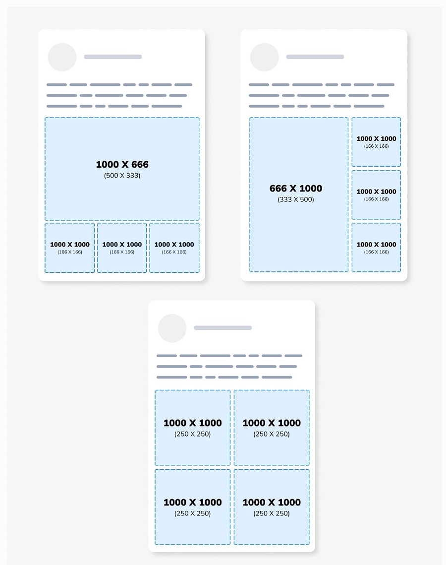 Khi bạn đăng 4 hình ảnh, hoặc nhiều hơn 4 hình ảnh, Facebook sẽ sử dụng những layout sau:
