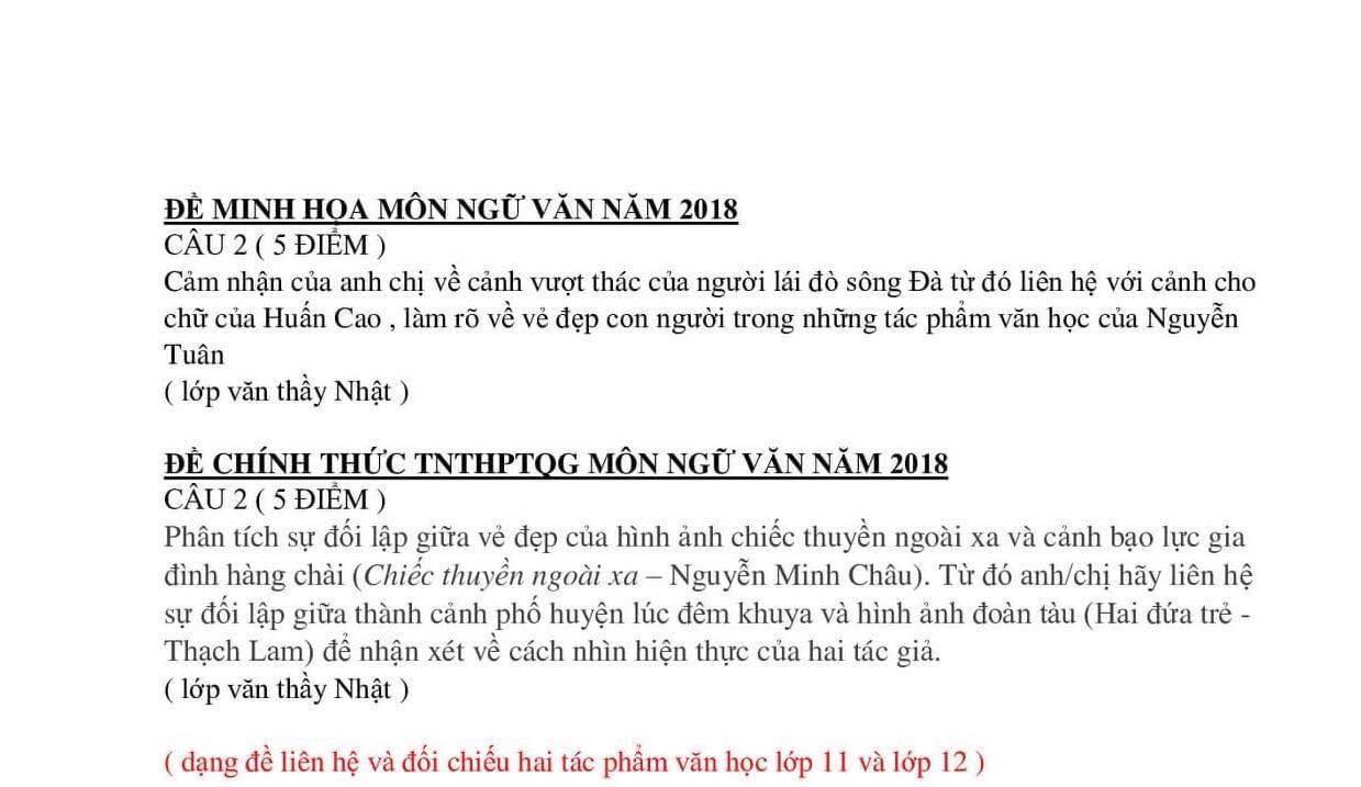 Đề thi minh họa và đề thi chính thức môn Văn năm 2018