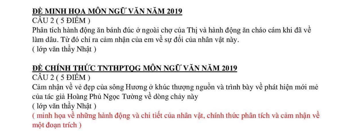 Đề thi minh họa và đề thi chính thức môn Văn năm 2019
