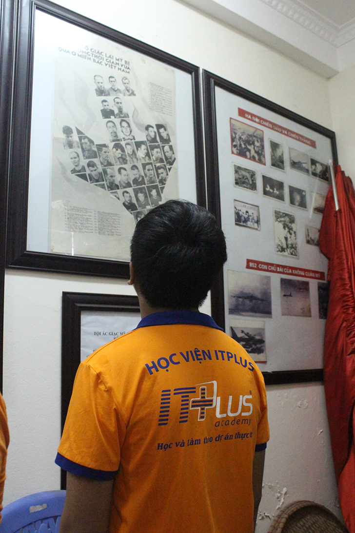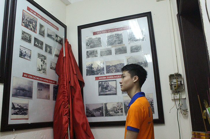 Sau khi thắp nhang tưởng niệm, học viên cùng Ban Lãnh đạo ghé thăm nhà truyền thống tại nghĩa trang, nơi lưu giữ những hình ảnh, tư liệu lịch sử liên quan đến cuộc chiến tranh và sự hy sinh của các chiến sĩ khu vực Khâm Thiên.
