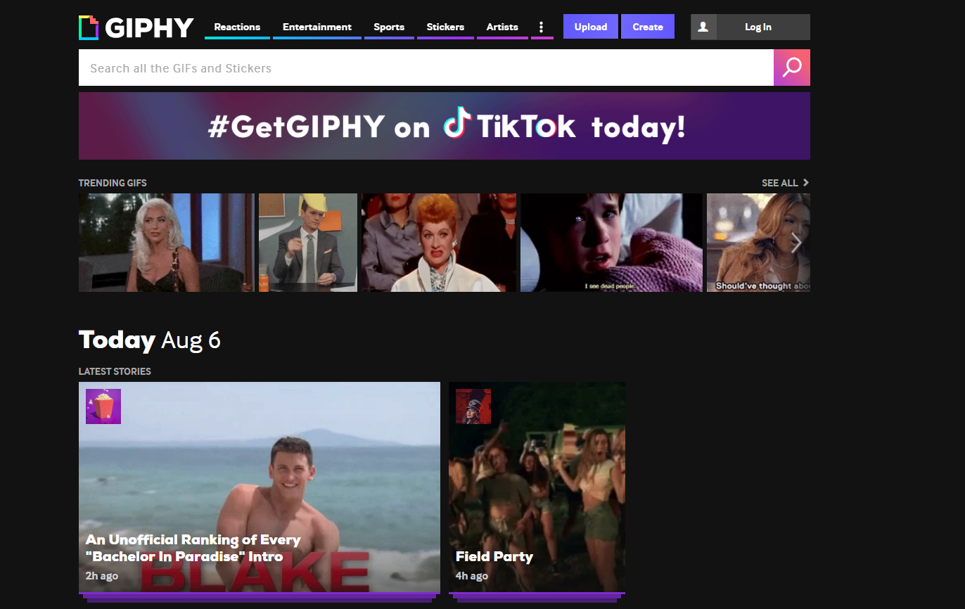 Bước 1: Truy cập trang chủ Giphy tại địa chỉ: https://giphy.com/, chọn Create để bắt đầu tạo mới