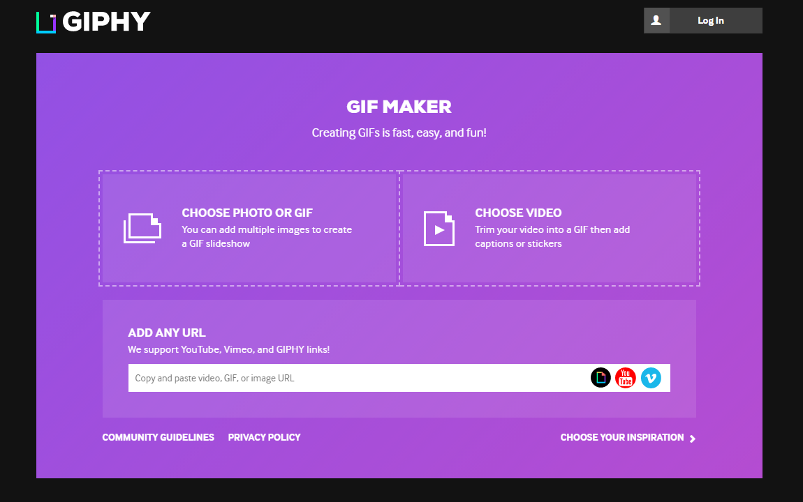 Bước 2: Bạn có thể lựa chọn tải video hoặc hình ảnh mà bạn muốn tạo Gif lên ở mục “Choose photo of Gif” hoặc “Choose Video”