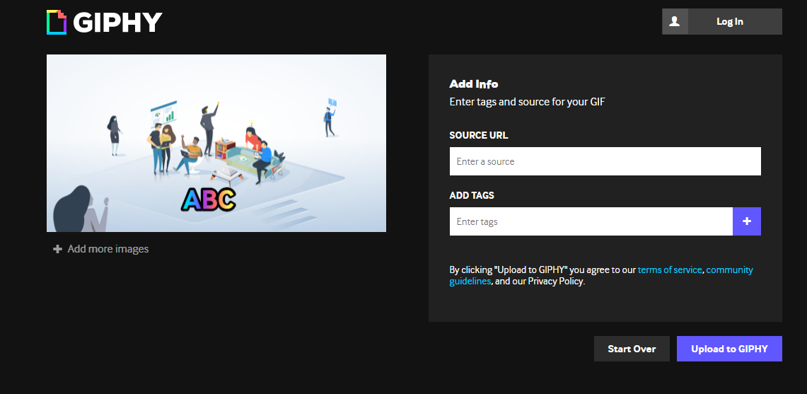 Bước 4: Thêm Caption, Tag và nguồn và nhấn Upload to Giphy