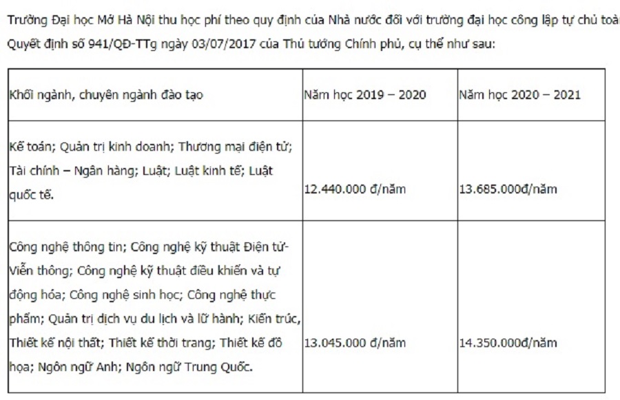 - Học phí trung bình dự kiến với sinh viên chính quy: 43,5 triệu đồng/năm