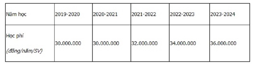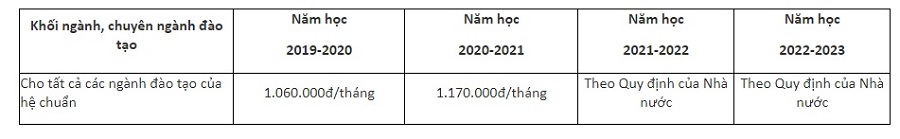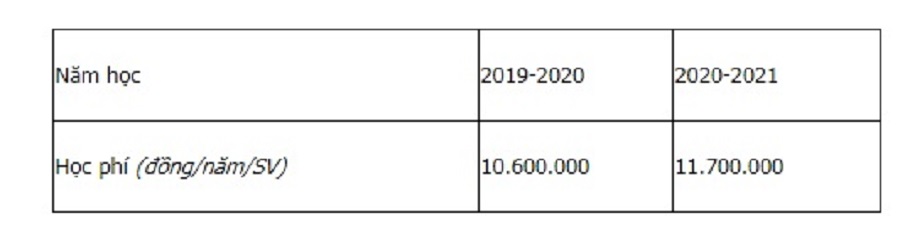 Học phí bình quân dự kiến từ 3.000.000 – 3.200.000 đồng/tháng, tương đương 15.000.000 – 16.000.000 đồng/học kỳ.