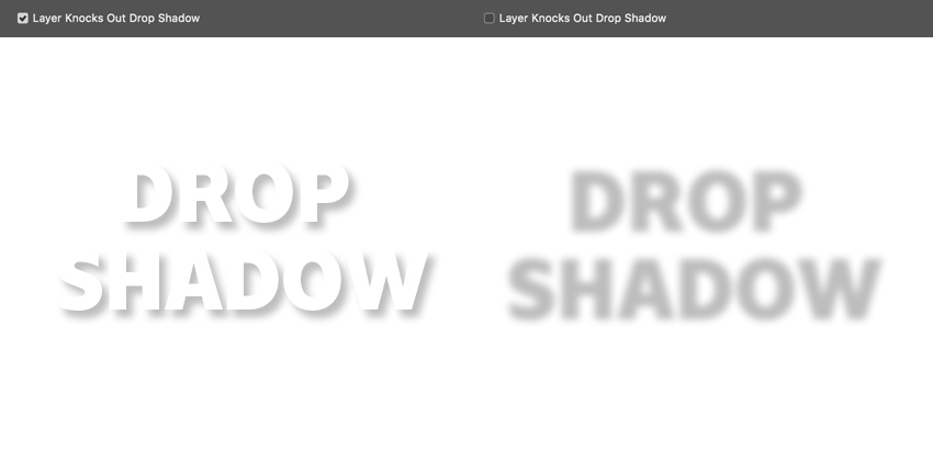 Chọn layer văn bản bên phải. Truy cập cửa sổ tùy chọn Layer Styles và chọn menu Drop Shadow. Bỏ chọn tùy chọn Layer Knocks Out Drop Shadow và bấm OK. Kết quả là một bóng hiển thị đè lên các nội dung layer.