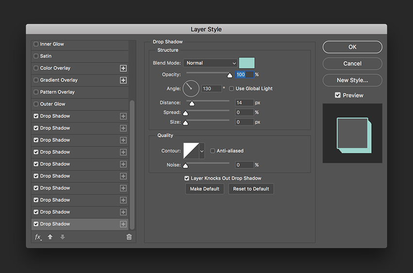 Nếu bạn sử dụng Photoshop phiên bản mới, bạn có thể thêm nhiều Drop Shadow với nhiều kiểu khác nhau.