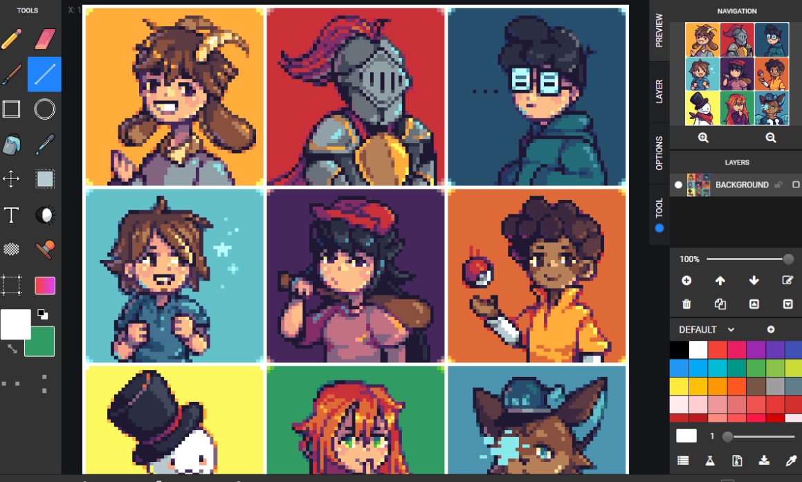 Bất kể bạn sử dụng chương trình nào, bạn sẽ dành nhiều thời gian cho các công cụ Pencil và Line. Các nghệ sĩ pixel sử dụng các công cụ Fill và Brush trong tác phẩm của họ, nhưng với sự cẩn trọng và tiết kiệm, một pixel duy nhất có thể tạo nên sự khác biệt. Việc di chuyển các pixel một cách có chủ ý và dễ dàng là yếu tố then chốt khi lựa chọn phần mềm.