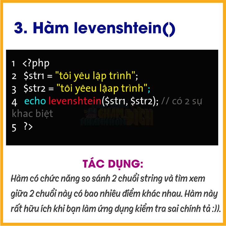 echo levenshtein($str1, $str2); //có 2 sự khác biệt