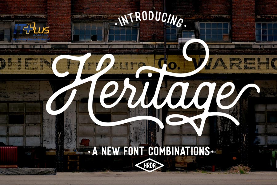 Heritage font và Voster font là sự kết hợp tuyệt vời bao gồm 2 phong cách khách nhau script và sans. Cách kết hợp này phù hiệu để làm nổi bật logo của sản phẩm như thiệp cưới, quần áo, đồ Vintage,...