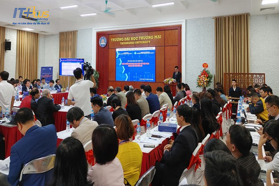 Vào lúc 7h30’ ngày 4 tháng 11 năm 2020 tại Hội trường H3, Đại học Thương Mại đã diễn ra sự kiện vô cùng quan trọng đó là hội thảo khoa học quốc gia “Phát triển thương mại điện tử Việt Nam trong kỉ nguyên số”. Nhận lời mời của ban tổ chức chương trình, thầy Hoàng Văn Thắng, giám đốc ITPlus Academy rất vinh hạnh tham dự.