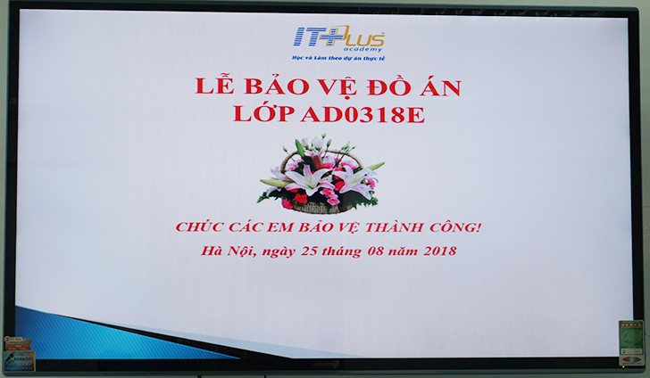 Chiều thứ 7 ngày 25/08/2018 vừa qua, 05 nhóm sinh viên của lớp AD0318E đã tham gia Buổi bảo vệ đồ án cuối khóa tại ITPlus Academy – Số 1 Hoàng Đạo Thúy, Thanh Xuân, Hà Nội. Với sự chuẩn bị kỹ lưỡng, tỉ mỉ, các nhóm đã mang đến các đề án rất chỉn chu, chi tiết, thuyết phục Hội đồng chấm khó tính.