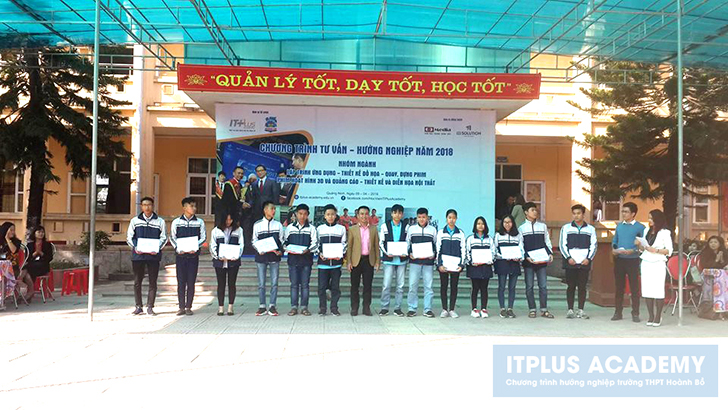 Tuần vừa qua, ITPlus Academy đã tổ chức một hoạt động thiết thực và vô cùng ý nghĩa đối với các em học sinh nói chung và các em học sinh lớp 12 nói riêng. Đặc biệt đó là các em học sinh của trường THPT Hoành Bồ. Trong ngày 8/4/2018 vừa qua, ITPlus đã kết hợp với BGH của trường THPT Hoành Bồ để tổ chức Chương trình Tư vấn – Hướng nghiệp năm 2018 cho các bạn học sinh.