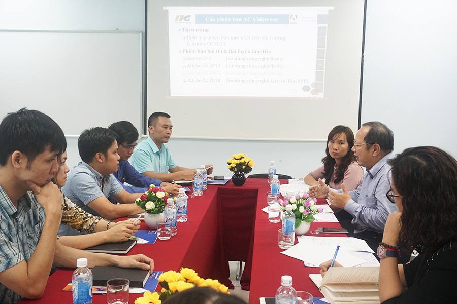 Tại cuộc họp, thầy Hồ Quang Đãng - chuyên viên ACA đã giành nhiều thời gian trao đổi về những đặc điểm, cấu trúc bài thi ACA cũng như vai trò quan trọng của việc sở hữu chứng chỉ ACA trong môi trường làm việc cạnh tranh mang tính toàn cầu hiện nay. Bên cạnh đó, hai bên cũng đã thảo luận và đưa ra những giải pháp, những phương án đào tạo để tiếp cận sinh viên cũng như điều chỉnh sao cho phát huy được thế mạnh của cả 2 đồng thời phù hợp với nhu cầu tuyển dụng trong ngành tại Việt Nam.