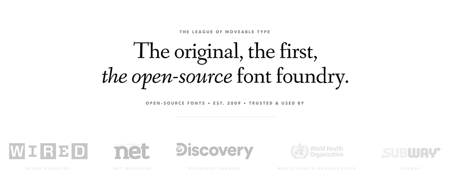 Như The League of Moveable Type tuyên bố trên trang chủ của họ, tầm nhìn của họ tập trung hoàn toàn vào việc nâng cao tiêu chuẩn thiết kế trang web và truyền đạt quyền lực cho mọi người thông qua các kiểu chữ đẳng cấp. Họ tự hào cung cấp nhiều kiểu chữ nguồn mở chất lượng cao trên trang web, mà bạn có thể tải xuống và sử dụng cho cả mục đích cá nhân và thương mại. Bạn cũng có thể đăng ký nhận bản tin của họ để cập nhật xu hướng kiểu chữ mới nhất và nhận tài nguyên miễn phí giúp bạn nâng cao kỹ năng thiết kế của mình.
