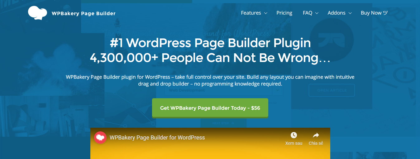 WPBakery page buider tương đối quen thuộc đối với cộng đồng sử dụng wordpress. Ưu điểm của WPBakery page buider là có hơn 40 element miễn phí phù hợp với đa dạng các chủ đề layout.