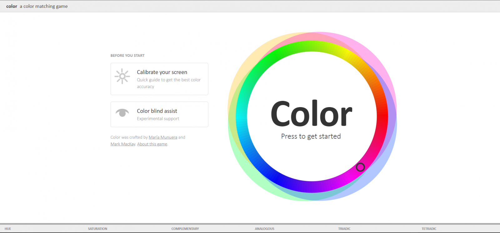 Đây là trang web để bạn test khả năng cảm màu, phối màu của bản thân ở các phần game gồm Hue, Saturation, Complementary, Analogous, Triadic, Tetradic.