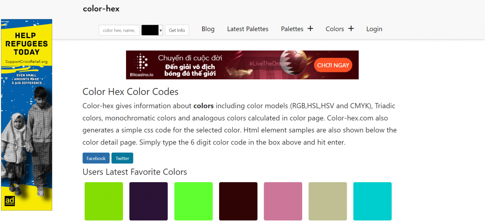 Trang web này cực kỳ hữu ích cho designers, nó cung cấp thông tin về mã số màu sắc bao gồm CSS, HTML, các hệ màu (RGB, HSL, HSV, CMYK).