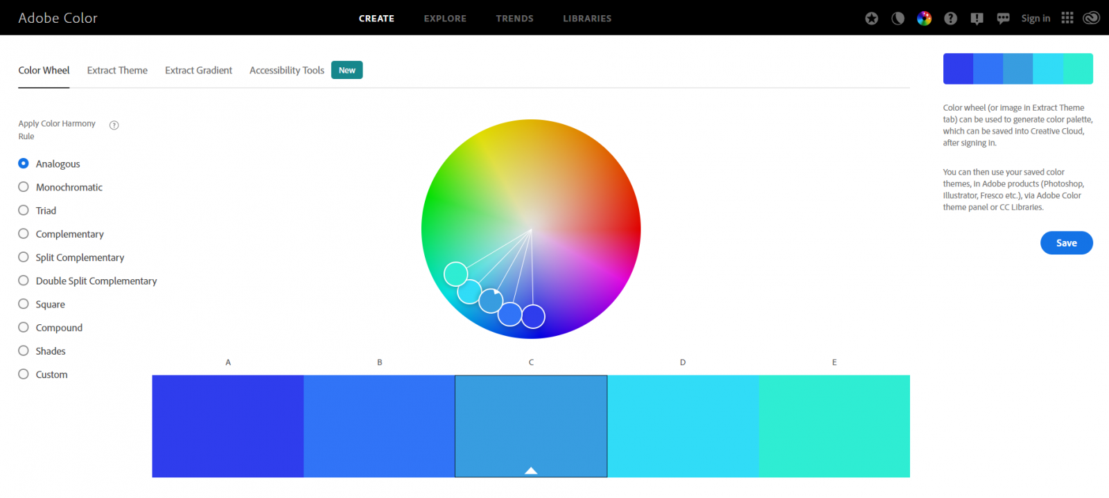 Đây là trang web về màu sắc có cộng đồng lớn nhất hiện nay. Vì vậy mà các thêm màu của trang web vô cùng phong phú. Bạn muốn tìm cho thiết kế của mình một theme màu độc lạ thì không nên bỏ qua Adobe Color nhé.