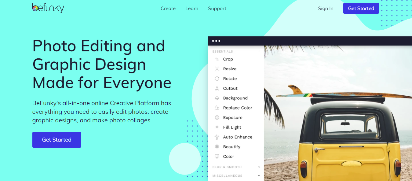 Befunky có 2 chức năng chính là chỉnh sửa ảnh và thiết kế. Befunky được nhận xét là giống Canva ở điểm chia template theo chủ đề (ẩm thực, du lịch,..). Bạn có thể thử Befunky khi muốn tìm kiếm tài nguyên khác với giao diện tìm kiếm tương tự Canva nhé. Trên đây là 5 công cụ thiết kế hiệu quả mà dân thiết kế không chuyên không thể bỏ qua nhé. Chúc các bạn thành công