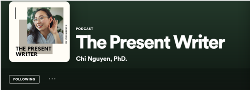 Không chỉ nổi tiếng trên youtube, instagram mà những podcast của Chi Nguyễn - Tiến sĩ Giáo dục tại Mỹ cũng truyền cảm hứng lớn tới rất nhiều người trẻ Việt Nam. Chủ đề của The Present Writer chủ yếu xoay quanh phong cách sống tối giản, phương pháp học tập hiệu quả và đặc biệt những tâm lý mà học sinh cần vượt qua trên con đường học tập nhé.