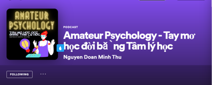 Tâm lý học là chủ đề gây tò mò mạnh đối với người đọc, đặc biệt là giới trẻ hiện nay. Amateur Psychology thuộc top kênh podcast hay nhất trên Spotify về tâm lý học con người của cựu du học sinh chuyên ngành tâm lý học tại Anh Quốc - Nguyễn Đoàn Minh Thư. Nội dung mỗi podcast liên quan đến vấn đề về khoa học xã hội, tâm lý học. Chị Thư sẽ chia sẻ nền tảng lý thuyết đã được minh chứng bằng thí nghiệm khoa học từ đó giải mã những hiện tượng tâm lý diễn ra trong cuộc sống hàng ngày theo cách gần gũi. Từ đó người nghe có thể học cách loại trừ những hiện tượng tâm lý tiêu cực hoặc biến chúng trở nên hữu ích.