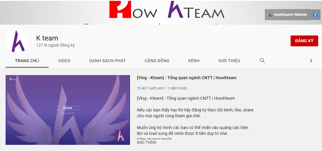 Kteam là kênh tự học IT hoàn toàn miễn phí mà dân mới không nên bỏ qua. Kênh này hướng dẫn lập trình từ cơ bản đến nâng cao với đa dạng các ngôn ngữ lập trình C, C++, SQL server,...