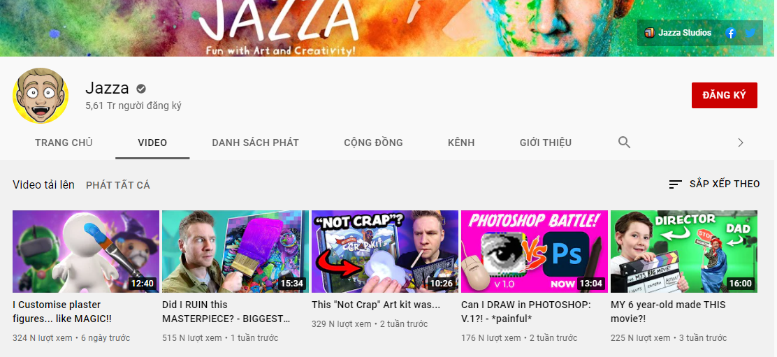 Jazza là kênh youtube có tới 5,61 triệu lượt đăng ký của Josiah Brooks. Nội dung của kênh chủ yếu tập trung vào việc dạy cách vẽ (cả vẽ truyền thống và vẽ kỹ thuật số), tô màu và làm animation. số. Bên cạnh các nội dung chủ yếu trên Jazza còn tạo ra các thử thách và cuộc thi nghệ thuật vô cùng thú vị. Chính vì vậy mà Jazza là kênh youtube rất phù hợp với những bạn mới bắt đầu học vẽ kỹ thuật số nhé.