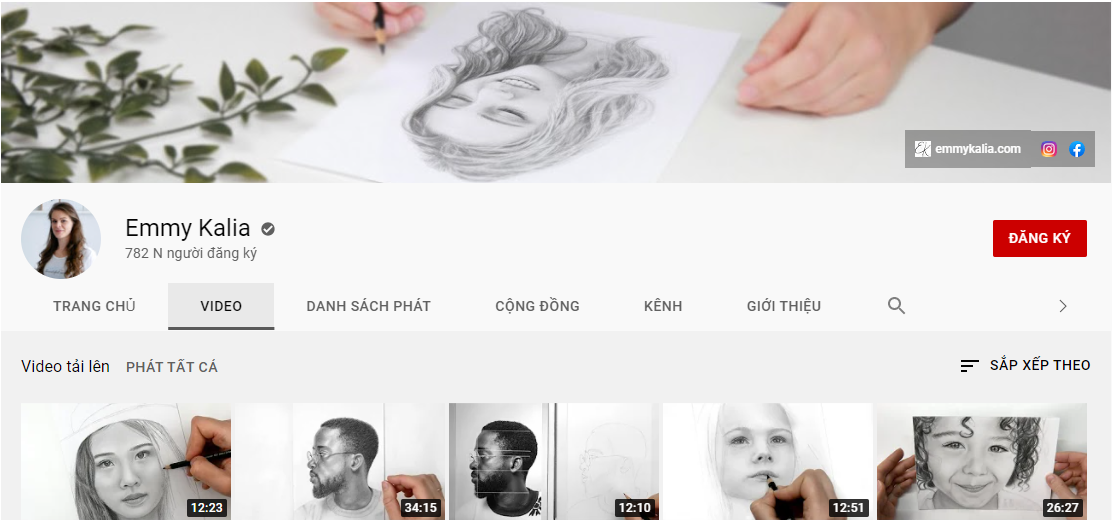 Emmy Kalia nổi tiếng với tài năng vẽ bằng than chì giống hệt ảnh chụp. Kênh youtube Emmy Kalia chia sẻ cách Kailia tạo ra các bức vẽ chì hiện thực đó. Ngoài ra kênh vô cùng hữu ích với các bạn học vẽ kỹ thuật số với những video sinh động, dễ hiểu.
