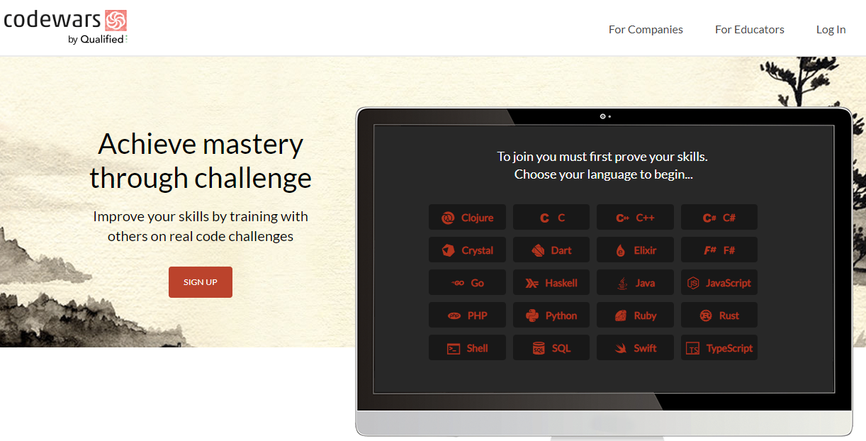 Codewars là web cũng đưa ra khá nhiều thử thách cho lập trình viên và có thể viết code với hơn 20 ngôn ngữ lập trình khác nhau. Tại đây, các lập trình viên trong web này có thể thảo luận trực tiếp và đưa ra những thử thách cho nhau. Nhờ vậy mà các lập trình viên có thể kiếm point và nâng rank của mình.
