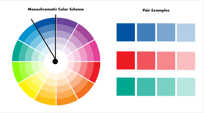 Đây là cách phối màu đơn giản và dễ áp dụng nhất. Ở cách phối màu này, bạn chỉ cần áp dụng 1 hoặc nhiều màu sắc có sắc độ khác nhau trong dải màu. Nghe thì khá đơn giản nhưng kiểu phối màu này cực kỳ hiệu quả trong thực tế vì sự hài hòa mang đến cho tổng thế thiết kế.