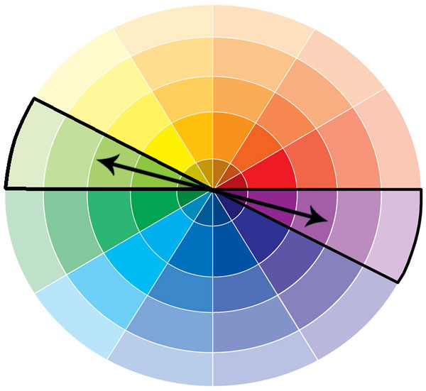 Đầu tiên, bạn nên chọn một màu chủ đạo được sử dụng nhiều nhất và dùng nó cho các chi tiết cần làm nổi bật. Sau đó, lựa chọn các màu nằm cùng sắc độ nằm kề bên trên dải màu để thể hiện các chi tiết phụ.