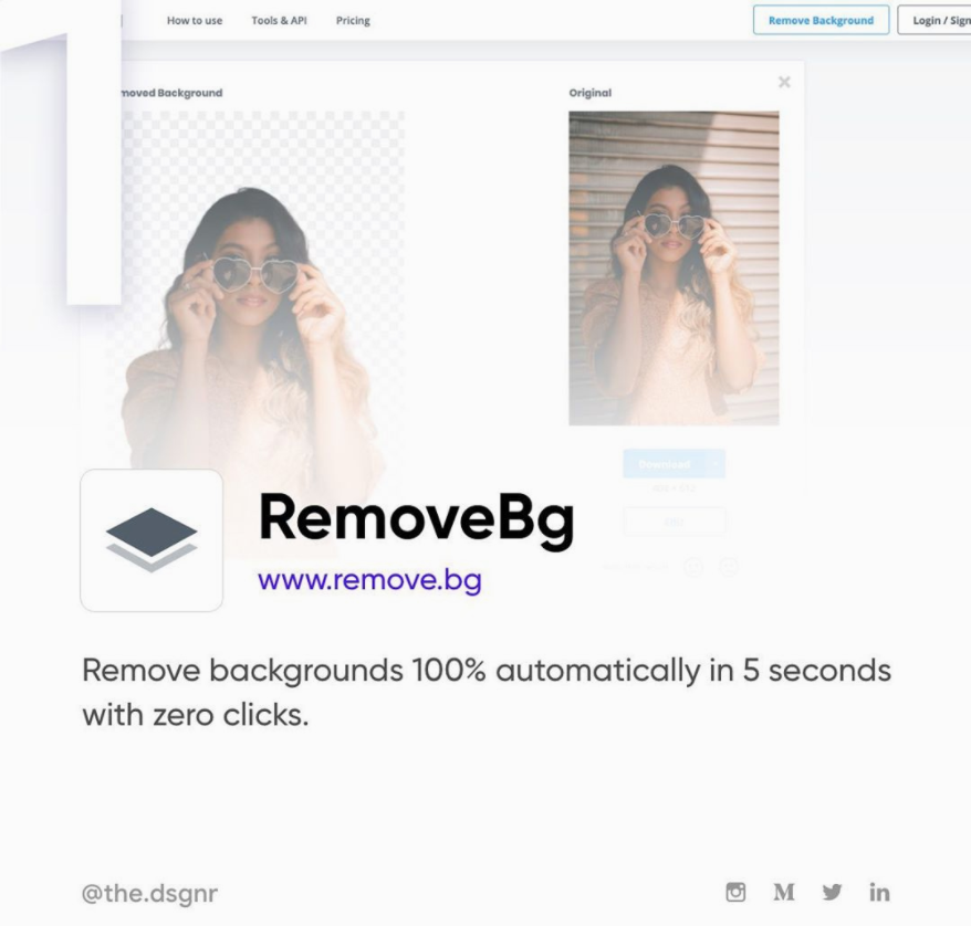 Công cụ này giúp bạn xóa nền hoàn toàn tự động và miễn phí chỉ trong 5 giây với 1 click. Sau khi truy cập vào trang web bạn chỉ cần upload ảnh hoặc tải lên file muốn loại bỏ background và chờ đợi. Hệ thống trí tuệ nhân tạo sẽ được sử dụng và cho ra bức ảnh đã tách nền như mong muốn. Bạn cũng có thể edit trực tiếp trên công cụ này để lồng cảnh mới vào phía sau hoặc xóa chi tiết thừa mà AI chưa nhận diện được.