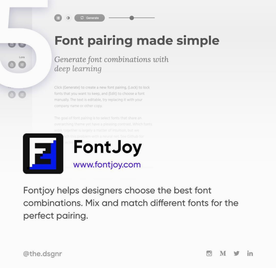 Fontjoy giúp các designers lựa chọn được những cách kết hợp font chữ tốt nhất cho thiết kế của mình. Hình dung một cách đơn giản, công cụ này sẽ gợi ý nếu tiêu đề bạn sử dụng font và cỡ chữ như thế nào thì các đề mục nhỏ hơn hay phần thân đoạn sẽ có font và cỡ chữ là bao nhiêu là tốt nhất.