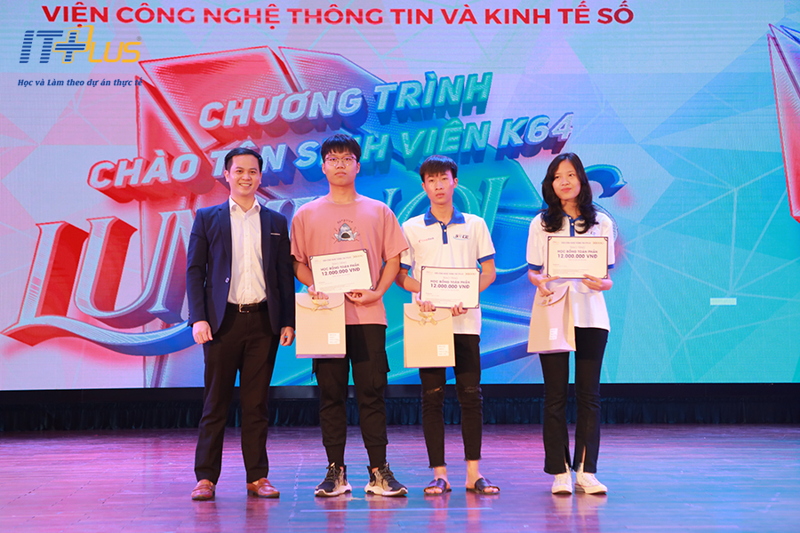 Trong chương trình, ông Trần Mạnh Hùng – Trưởng phòng Đối ngoại, Viện Công nghệ thông tin ITplus đã trao học bổng trị giá 120 triệu đồng cho các sinh viên của khoa trong đó có 03 học bổng toàn phần cho 03 thủ khoa ngành/chuyên ngành trị giá 12 triệu đồng/suất.