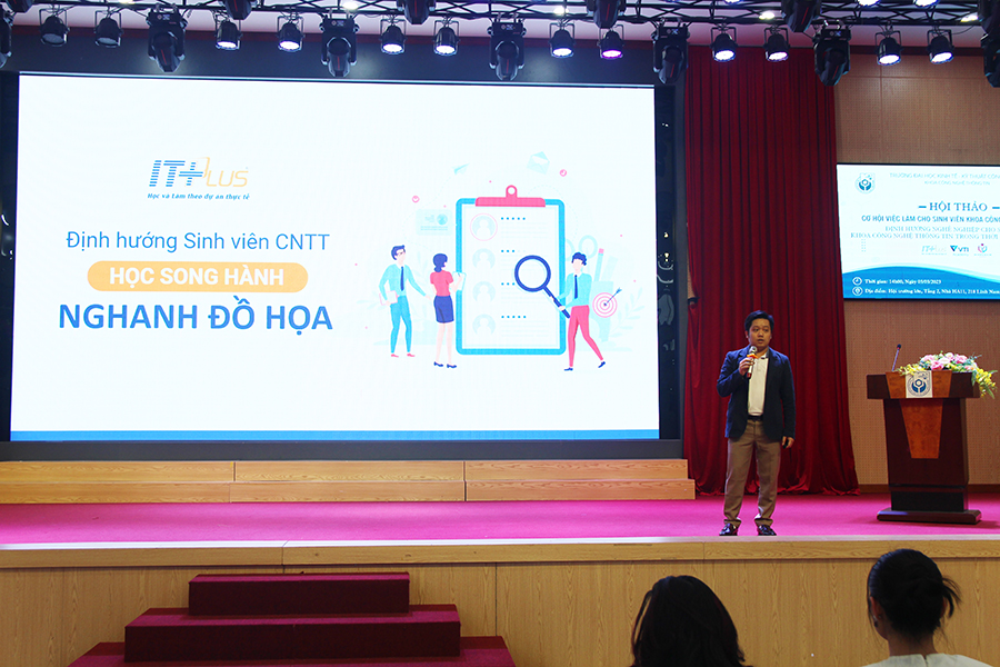 Thầy Lưu Kim Khánh - Trưởng ngành Đồ họa Viện Công nghệ thông tin ITPlus chia sẻ tại buổi hội thảo