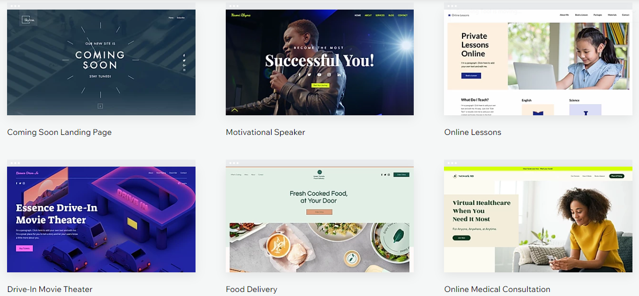 Wix với đa dạng các mẫu có tích hợp nhiều tính năng giúp bạn có được những lựa chọn tốt nhất bất kể ở lĩnh vực nào. Có hơn một chục danh mục bao gồm âm nhạc, thiết kế, cửa hàng trực tuyến, nhiếp ảnh, kinh doanh và nhiều hơn nữa. Tất cả các mẫu trang web của Wix đều có cùng các tính năng cốt lõi và hoàn toàn có thể tùy chỉnh, vì vậy bạn có thể chọn một mẫu và thay đổi bất cứ điều gì để biến nó thành của bạn.