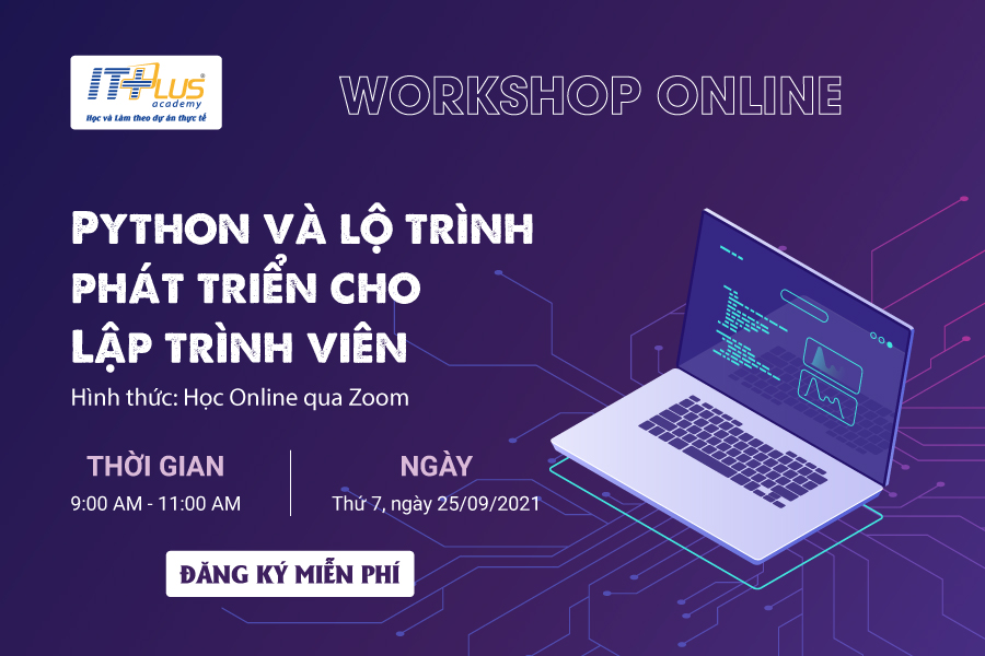 Nhằm giúp các bạn sinh viên yêu thích lập trình, đặc biệt là về "Lập trình Python" và các ứng dụng hiện nay tại các doanh nghiệp thực tế, ITPlus Academy tổ chức chương trình Workshop Online "Python và lộ trình phát triển cho Lập trình viên" vào lúc: 9h00 - 11h00 Sáng thứ Bảy ngày 25/09/2021 với sự góp mặt của khách mời: