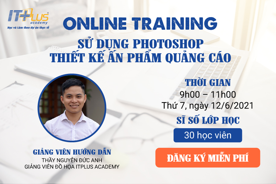 Nằm trong chương trình “Dạy Đồ Họa Online” miễn phí dành cho Cộng đồng sinh viên của ITPlus Academy, ngày 12/06/2021, Phòng Dự Án Đồ Họa ITPlus Academy tổ chức buổi Online Training dành cho 30 bạn sinh viên với chủ đề: “Sử dụng Photoshop thiết kế ấn phẩm quảng cáo”